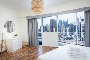 Apartmán 180° Sheik Zayed Road s balkónem a výhledem, 2 ložnice v JLT se nachází v Dubaji a nabízí prostorné klimatizované ubytování s vlastním bazénem a bezplatným WiFi připojením. Tento apartmán leží jen 6,9 km od The Montgomery a 8,7 km od The Walk v JBR, má jednu místnost a zahrnuje bezplatné soukromé parkování i výhled z balkónu.