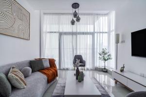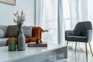 Das ShoresInn - Chic Waterfront Living in Dubai Marina befindet sich in der Dubai Marina und bietet ein geräumiges Apartment mit einzigartigem Seeblick sowie einen Außenpool. Die klimatisierte Unterkunft verfügt über einen privaten Balkon und liegt nur wenige Schritte von The Walk at JBR entfernt, während der Marina Beach 1,5 km entfernt ist.