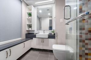 Студия оборудована полностью оснащённой мини-кухней с духовкой, плитой, холодильником, микроволновой печью, электрическим чайником, обеденным столом и принадлежностями для приготовления чая и кофе. Внутри кондиционируемого помещения имеется одна кровать и собственная ванная комната с бесплатными туалетными принадлежностями: шампунем, кондиционером и мылом для тела. Дополнительные удобства включают шкаф-гардероб, рабочий стол, стиральную машину, гладильные принадлежности (утюг и гладильную доску) а также свежие постельные принадлежности.