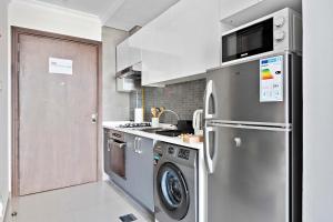 Una cocina americana completamente equipada invita a las actividades culinarias con horno, placa eléctrica, microondas, frigorífico junto con utensilios de cocina además de instalaciones para preparar té y café, todo ello complementado por una mesa comedor. El wifi gratuito cubre toda la unidad y hay opciones televisivas disponibles in situ. Entre los servicios adicionales destacan estacionamiento gratuito en el lugar, asimismo el edificio cuenta con ascensor garantizando facilidad en los desplazamientos.