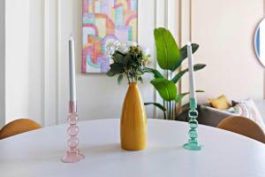 W przestronnym wnętrzu goście znajdą jedną sypialnię wyposażoną w pościel i ręczniki. Prywatna łazienka posiada wannę, szampon oraz suszarkę do włosów. W pełni wyposażona kuchnia zawiera piekarnik, płytę grzewczą, lodówkę, mikrofalówkę, czajnik elektryczny oraz zestaw do parzenia kawy i herbaty wraz z niezbędnym sprzętem kuchennym. Dodatkowo apartament oferuje prasowalnicę z deską do prasowania, pralkę, klimatyzację oraz biurko do pracy.