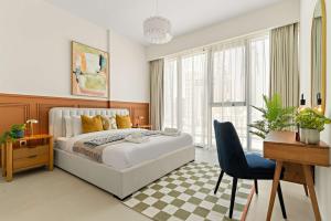 Die klimatisierte Unterkunft Silkhaus Luxury 1BDR Stay in Canal Front, Al Wasl in Dubai verfügt über eine Terrasse und ein geräumiges Zimmer.