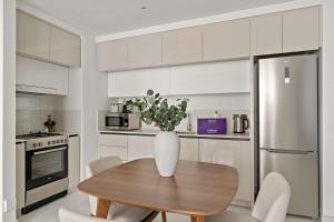 All'interno dell'ampio appartamento gli ospiti troveranno una camera con due letti, un angolo cottura completamente attrezzato che include forno, piano cottura, frigorifero, lavastoviglie, microonde e bollitore elettrico con set per tè e caffè. Il bagno è dotato di vasca e articoli da toilette gratuiti come shampoo, balsamo e sapone per il corpo. Tra i comfort aggiuntivi figurano aria condizionata, biancheria da letto, ferro da stiro con asse, armadio o guardaroba, scrivania e lavatrice.