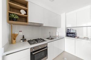 Das Apartment verfügt über ein Schlafzimmer mit einem Bett sowie ein Badezimmer mit Badewanne und kostenfreien Pflegeprodukten wie Shampoo, Conditioner, Duschgel und Haartrockner. Die voll ausgestattete Küche umfasst moderne Geräte wie Backofen, Kochfeld, Mikrowelle, Kühlschrank sowie Wasserkocher und Tee-/Kaffeezubereitungsmöglichkeiten. Zu den weiteren Annehmlichkeiten zählen Handtücher, Bettwäsche, Klimaanlage in der gesamten Einheit, Bügeleisen mit Bügelbrett, Kleiderschrank oder Schrankraum, Waschmaschine sowie ein Arbeitstisch.
