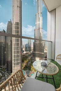The luxurious Sky High Luxury, Grande Signature, Burj Khalifa View apartment in Dubai offers a private pool and free WiFi just a 5-minute walk from Dubai Mall and close to the iconic Burj Khalifa. This spacious accommodation includes one room with stunning sea views, complemented by outdoor furniture on the balcony and terrace.