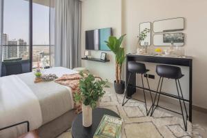Das moderne Studio-Apartment mit Balkon in JVC, Dubai, verfügt über eine Terrasse und einen Außenpool. Es liegt 8 km vom Dubai Autodrome und 13 km vom Mall of the Emirates entfernt. Das Apartment umfasst einen Raum und bietet kostenfreie Parkplätze am Haus.
