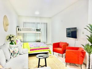 Nemovitost je vzdálena pouze 2,7 km od pláže La Mer, Velká mešita je ve vzdálenosti 4,1 km. Nákupní centrum City Walk Mall leží 5,2 km daleko, zatímco Dubai Mall a Burj Khalifa jsou oba přibližně do 8 km. K fontáně Dubai Fountain se dostanete za 8,3 km a Sahara Centre je vzdáleno 14 km. Mezinárodní letiště v Dubaji je asi 10 km od apartmánu.