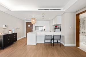 L’alloggio comprende una camera da letto con un letto, un bagno privato con vasca e doccia oltre a prodotti da toilette gratuiti come shampoo e balsamo. La cucina completamente attrezzata include piano cottura, frigorifero, microonde, macchina per il caffè, bollitore e utensili completi insieme a un tavolo da pranzo per pasti fatti in casa. Tra gli altri comfort della stanza figurano aria condizionata, armadio guardaroba, biancheria da letto e asciugamani oltre a ferro da stiro e cabina armadio.