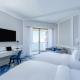 Do wyboru są klimatyzowane pokoje wyposażone w charakterystyczne łóżka MyBed oraz telewizory z płaskim ekranem, odtwarzaczami DVD i systemami dźwiękowymi Bose. Większość pokoi posiada prywatne balkony z widokiem na morze. Wyposażenie wnętrz obejmuje biurka do pracy, sejfy, strefy wypoczynku, wyciszenie akustyczne, szafy lub garderoby oraz sprzęt do prasowania wraz z deskami. Na życzenie dostępne są również łóżeczka dziecięce. Łazienki wyposażone są w wannę lub prysznic, bidet, suszarki do włosów, szlafroki, kapcie oraz bezpłatne kosmetyki.