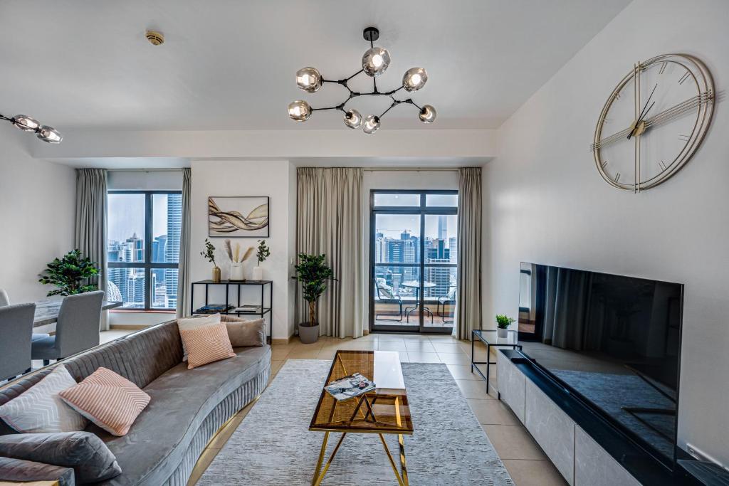 Offrant une vue sur la mer et la ville, cet appartement spacieux de 2 chambres à Amwaj JBR, proche de la plage, est situé à Dubaï, à seulement 500 mètres de Marina Beach. Il dispose d'un patio privé, d'un parking privé sur place, du Wi-Fi gratuit et comprend une pièce.