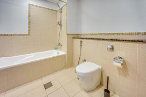 Cet appartement spacieux comprend deux chambres et deux salles de bains équipées d'une baignoire et d'un bidet. Les hôtes bénéficient de la climatisation dans tout l’appartement ainsi que du linge comprenant serviettes et oreillers non duvetés. Le salon est doté d’un canapé et d’une télévision écran plat avec chaînes satellite. De plus, vous trouverez un fer avec planche à repasser, des espaces penderie, un lave-linge, un lit bébé ou berceau en option, un étendoir ainsi que des articles essentiels tels que shampoing et savon corporel.