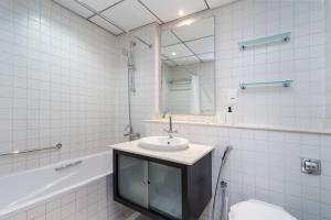 В просторной квартире две спальни и две ванные комнаты с ванной, душем, биде, феном, бесплатными туалетными принадлежностями и гидромассажной ванной. Полностью оборудованная кухня оснащена современной техникой: духовкой, микроволновой печью, плитой, холодильником, тостером, электрическим чайником а также принадлежностями для приготовления чая и кофе вместе со всем необходимым кухонным инвентарём. Дополнительные удобства включают кондиционер воздуха, гладильные принадлежности (утюг и гладильную доску), полотенца для комфорта гостей и стиральную машину.