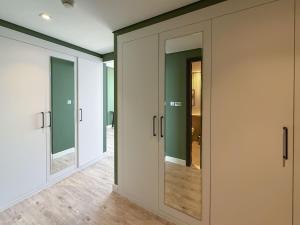 Die Unterkunft umfasst ein Schlafzimmer mit einem Bett sowie eine voll ausgestattete Küche mit modernen Geräten wie Kühlschrank, Geschirrspüler, Backofen, Mikrowelle, Toaster, Kaffeemaschine und Wasserkocher. Zu den weiteren Ausstattungen zählen Bügelmöglichkeiten mit Bügeleisen und Bügelbrett sowie Waschgelegenheiten mit Waschmaschine und Trockner. Das Badezimmer verfügt wahlweise über Badewanne oder Dusche sowie einen Haartrockner.