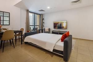 Apartmán Spacious 5BR s pokojem pro služebnou na pláži JBR blízko nákupního centra a metra - od Sunkissed Holiday Homes se nachází v Dubaji, méně než 1 km od The Walk at JBR a 1,6 km od Marina Beach. Tento apartmán nabízí pět ložnic a z balkonu je výhled na město.
