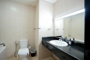 Cet appartement généreux se compose de quatre chambres, cinq salles de bains équipées de bidets et d’articles de toilette gratuits, ainsi qu’un salon. Il dispose également d’un coin cuisine entièrement équipé avec four, réfrigérateur, lave-vaisselle, micro-ondes, ustensiles et installations partagées. Parmi les équipements supplémentaires figurent la climatisation, le linge de lit et les serviettes, un canapé, un coffre-fort ainsi qu’une armoire ou penderie. Les pièces sont insonorisées avec choix entre moquette ou sol carrelé/marbré. Une machine à laver est mise à disposition des hôtes aux côtés d’espaces détente et bureau.