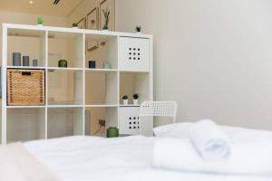 Lo studio climatizzato è composto da una camera matrimoniale con un letto, una cucina completamente attrezzata con forno, microonde, piano cottura, frigorifero, asciugatrice per i vestiti e lavatrice. Il bagno privato è fornito di shampoo e sapone per il corpo, la biancheria come asciugamani e lenzuola è inclusa insieme ad accessori extra quali ferro da stiro e culla.