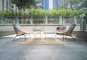 Goście mogą korzystać z bezpłatnego WiFi na terenie całego apartamentu oraz rozrywki za pośrednictwem telewizora z płaskim ekranem ze stacjami dokującymi przy łóżku umożliwiającymi ładowanie urządzeń. W pokoju zamontowano detektor dymu i tlenku węgla oraz gaśnicę dla zapewnienia bezpieczeństwa. Na balkonie znajduje się meble ogrodowe pozwalające na relaks przy podziwianiu widoków.