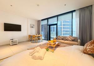 El espacioso estudio con balcón privado y vistas al mar, ubicado en Dubái, ofrece alojamiento con aire acondicionado y piscina privada. Este apartamento de una habitación se encuentra a solo 1,9 km de la Fuente de Dubái y a 2,7 km del Burj Khalifa. Dispone de vistas al jardín, balcón y aparcamiento privado gratuito.