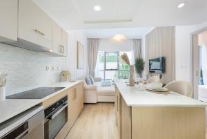 Przestronny apartament składa się z jednej sypialni, dwóch łazienek, salonu oraz w pełni wyposażonego aneksu kuchennego odpowiedniego do gotowania i przechowywania żywności. Dodatkowe udogodnienia obejmują klimatyzację, pralkę oraz sprzęt do prasowania wraz z deską i żelazkiem. Dla rodzin dostępny jest także wysokie krzesło dla dziecka oraz łóżeczko dziecięce.