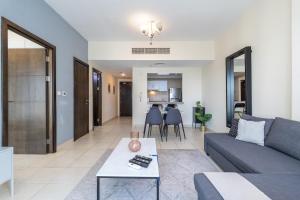 Apartmán StayShort - Refined 1BR Retreat v The Point Tower - Marina se nachází v Dubaji méně než 1 km od The Walk at JBR. Tento prostorný apartmán nabízí klimatizaci a bezplatné Wi-Fi. K dispozici je jedna ložnice, dvě koupelny a plně vybavený kuchyňský kout.