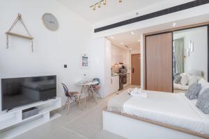 Апартаменты с кондиционером и патио StayShort - превосходная и удивительная студия в Binghatti Lavender с балконом расположены в Дубае, всего в 12 км от торгового центра Mall of the Emirates. В квартире одна комната с двумя кроватями, а на балконе установлена уличная мебель для отдыха и наслаждения видами.