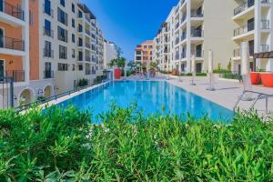 Hosté mohou využít bezplatné parkování na místě i bezdrátové internetové připojení zdarma po celém apartmánu. Další volnočasové vybavení zahrnuje přístup k bazénu a fitness centru pro maximální pohodlí během pobytu.