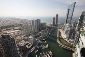 Dotato di piscina privata e viste mozzafiato sullo skyline, Stella Maris High Floor si trova a Dubai Marina, Dubai. Questo ampio appartamento comprende una camera con tre letti ed è la sistemazione ideale a soli 1,2 km da Marina Beach e 1,4 km da The Walk at JBR.