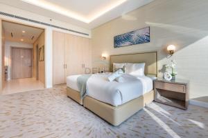 Situato a Dubai, a soli 1,2 km da Palm West Beach, l'appartamento Steps from Nakheel Mall and Monorail Station, Near Beach Clubs, 15 Mins to Downtown and Marina, The Palm Tower, Palm Jumeirah by Deluxe Holiday Homes offre viste sul mare e connessione WiFi gratuita. Questa sistemazione climatizzata dispone di una camera da letto con un letto e un bagno privato completo di doccia, bidet, asciugacapelli e set di cortesia con sapone per il corpo e shampoo.
