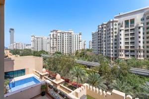 Weniger als 1 km vom Palm West Beach entfernt bietet StoneTree - Golden Mile 4 2 BR - Supreme Residences in Dubai geräumige, klimatisierte Apartments mit privatem Pool und kostenfreiem WLAN. Diese Unterkunft umfasst ein Zimmer mit Balkon und Aussicht.