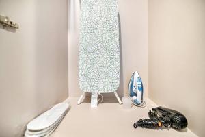 El apartamento dispone de dos dormitorios amueblados con tres camas, además de dos baños equipados con secadores de pelo y jabón corporal para mayor comodidad. La cocina completa incluye nevera, microondas, facilidades para preparar té y café así como una cocina americana. Entre las comodidades adicionales en la habitación se encuentran aire acondicionado, toallas, ropa de cama, plancha y lavadora.