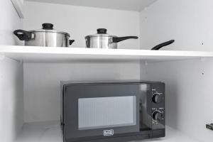 All’interno dello studio elegante c’è una camera da letto arredata con un letto singolo oltre ad un angolo cottura completamente attrezzato con forno, piano cottura, frigorifero, microonde e servizi per tè e caffè. Per maggiore comodità sono disponibili ferro da stiro, lavatrice, asciugamani e biancheria da letto.