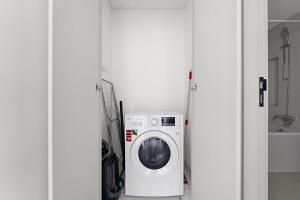 Die klimatisierte Wohnung verfügt über ein separates Schlafzimmer mit zwei Betten, ein Wohnzimmer sowie eine voll ausgestattete Küche für alle Kochbedürfnisse. Ein eigenes Bad ist vorhanden, zudem sind Annehmlichkeiten wie Waschmaschine und Flachbildfernseher im Zimmer verfügbar.