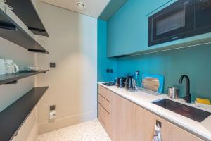 The apartment features a fully equipped kitchen complete with a stovetop, microwave, toaster, electric kettle, refrigerator, and kitchenware for all culinary needs. Inside the studio's single room guests will find one bed along with essential amenities such as bed linen, an iron with ironing board, wardrobe or closet space, safe deposit box, washing machine, towels and air conditioning to ensure comfort throughout their stay. The private bathroom contains both shower facilities including bidet options.