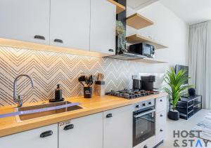 Ubytování zahrnuje jednu ložnici s jedním lůžkem, vlastní koupelnu vybavenou fénem a šamponem a plně vybavený kuchyňský kout s troubou, mikrovlnnou troubou, varnou deskou, lednicí i přípravou čaje a kávy. Další vybavení pokoje tvoří klimatizace, žehlička, pračka a dětská postýlka.