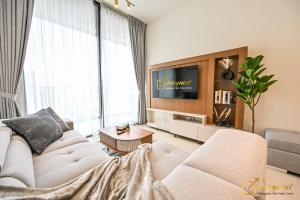 Le logement comprend une chambre avec trois lits, une salle de bains et un coin salon. Les hôtes peuvent préparer leurs repas dans le coin cuisine entièrement équipé, qui dispose également d'espaces de rangement pour les provisions. Les équipements en chambre incluent une télévision à écran plat, la climatisation et un lave-linge.
