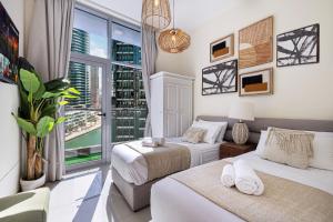 La propiedad está situada a menos de 1 km de The Walk en JBR y a 7 km de The Montgomery, Dubái. El Aeropuerto Internacional Al Maktoum se encuentra a 24 km, lo que facilita el acceso para los viajeros. Los huéspedes pueden disfrutar de servicios cercanos como un parque infantil y baños públicos dentro del edificio.