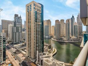 Situado a solo 2,7 km de Marina Beach, el elegante apartamento de 1 dormitorio con balcón y vistas al canal cerca de la estación de metro Shoba en Dubái cuenta con una habitación, balcón con vistas al mar, WiFi gratis y aparcamiento privado.
