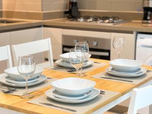 Klimatizovaný apartmán má dvě ložnice, obývací pokoj a dvě koupelny vybavené sprchovými kouty typu walk-in a toaletními potřebami zdarma. Kompletně vybavený kuchyňský kout obsahuje troubu, varnou desku, myčku nádobí, mikrovlnnou troubu, lednici, kávovar, rychlovarnou konvici, toustovač a veškeré potřebné náčiní pro přípravu jídel. Další vybavení zahrnuje pračku a sušičku.