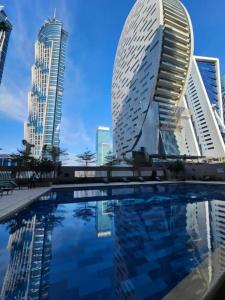 Apartmán je také výhodně situován 3,1 km od Dubai Mall a jen 3,2 km od fontány Dubai Fountain. Nákupní centrum City Walk Mall leží ve vzdálenosti 4,7 km a mezinárodní letiště v Dubaji je vzdáleno 14 km.