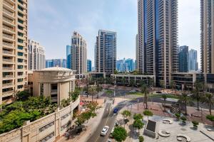 Situato a meno di 1 km dal Burj Khalifa, l'appartamento Stylish 1BR Near Burj Khalifa & Fountains a Dubai offre una spaziosa camera da letto e dispone di piscina privata e parcheggio privato gratuito. Questa sistemazione climatizzata include anche connessione WiFi gratuita e TV a schermo piatto, con vista sul giardino dal balcone.
