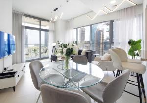 Im Zentrum von Dubai gelegen, bietet das stilvolle 2-Zimmer-Apartment in Bellevue mit Pool, Fitnessraum und Blick auf den Burj Khalifa eine großzügige Unterkunft mit kostenlosem WLAN und Klimaanlage. Die Einheit verfügt über einen Balkon mit Stadtblick sowie Zugang zu einem ganzjährig nutzbaren Außenpool. Nur wenige Schritte entfernt befinden sich der Dubai Fountain und der Burj Khalifa, die Dubai Mall ist 1,9 km entfernt.