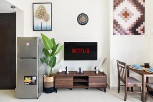 L’appartamento climatizzato presenta due letti in una camera da letto oltre a un angolo cottura completamente attrezzato con forno, microonde, piano cottura, frigorifero e utensili da cucina. Il bagno è dotato di bidet, vasca con funzione spa, asciugacapelli e articoli da toilette omaggio tra cui shampoo e balsamo. Tra le altre comodità della camera figurano pareti insonorizzate per garantire privacy, TV a schermo piatto, cassaforte personale, ferro da stiro con asse nonché lavatrice.