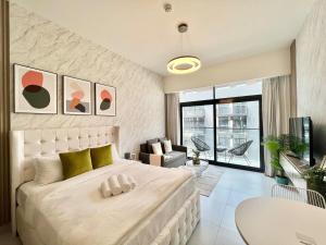 El apartamento se encuentra cerca de varios lugares emblemáticos como el Dubai Autodrome a 11 km, The Montgomery a 12 km, la Torre Burj Al Arab a 13 km y The Walk en JBR, a solo 14 km. Los huéspedes también pueden acceder al parque acuático Aquaventure y al Templo Gurunanak Darbar Sikh, ambos ubicados aproximadamente a 18 km de la propiedad. El Aeropuerto Internacional Al Maktoum está situado a 29 km.