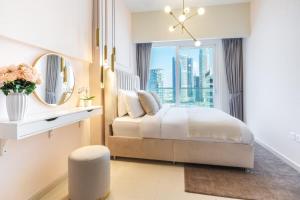 Stylový apartmán Stylish Stayz 2BR Corner Unit - Yacht & Burj Khalifa Views - blízko Dubai Mall se nachází v Dubaji, pouhých 1,5 km od fontány The Dubai Fountain a 1,7 km od obchodního centra Dubai Mall. Tento prostorný byt má jeden pokoj s výhledem na řeku a hostům, kteří přijedou autem, je k dispozici bezplatné soukromé parkování.