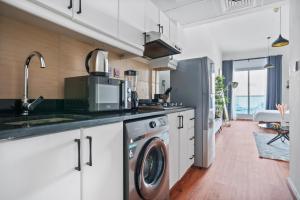 el apartamento ofrece plancha con tabla para ropa segura caja fuerte y lavadora. El baño cuenta con artículos gratuitos como champú y acondicionador,