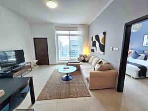 Die klimatisierte 1-Zimmer-Wohnung SUNRISE HOMES - Charmantes Apartment mit einem Schlafzimmer und nur wenigen Gehminuten vom JBR Strand entfernt befindet sich im Stadtteil Jumeirah Beach Residence in Dubai und bietet Stadtblick von ihrem Balkon. Zur Ausstattung der Unterkunft gehören ein beheizter Pool, ein Fitnesscenter, ein Whirlpool, Dampfbad, Sauna sowie ein Hallenbad.