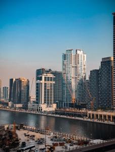 Apartament typu studio Sunset Balcony - dla 4 osób - z widokiem na wodę - basen i siłownia - 1 sypialnia znajduje się w Dubaju, zaledwie 2,9 km od Burdż Chalifa. To klimatyzowane mieszkanie posiada balkon oraz prywatny basen jako wyjątkowy atut.