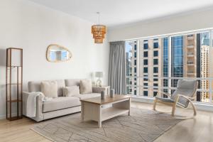 Ubicado a solo 500 metros de Marina Beach y a 300 metros de The Walk en JBR, Superb Marina Views I Sleeps 5 es un espacioso apartamento en Dubái que cuenta con aire acondicionado, WiFi gratis y capacidad para hasta cinco huéspedes. Esta propiedad de un dormitorio incluye una sala de estar y ofrece vistas a la marina desde su patio privado.