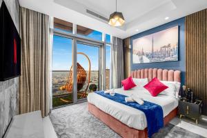 Apartmán s jednou místností „64th floor Skyline Pool with Burj Khalifa View in Paramount Hotel Midtown“ se nachází v Dubaji a nabízí střešní bazén s dechberoucím výhledem na Burj Khalifa. Toto klimatizované ubytování má soukromou terasu a z balkonu panoramatický výhled na město i moře.
