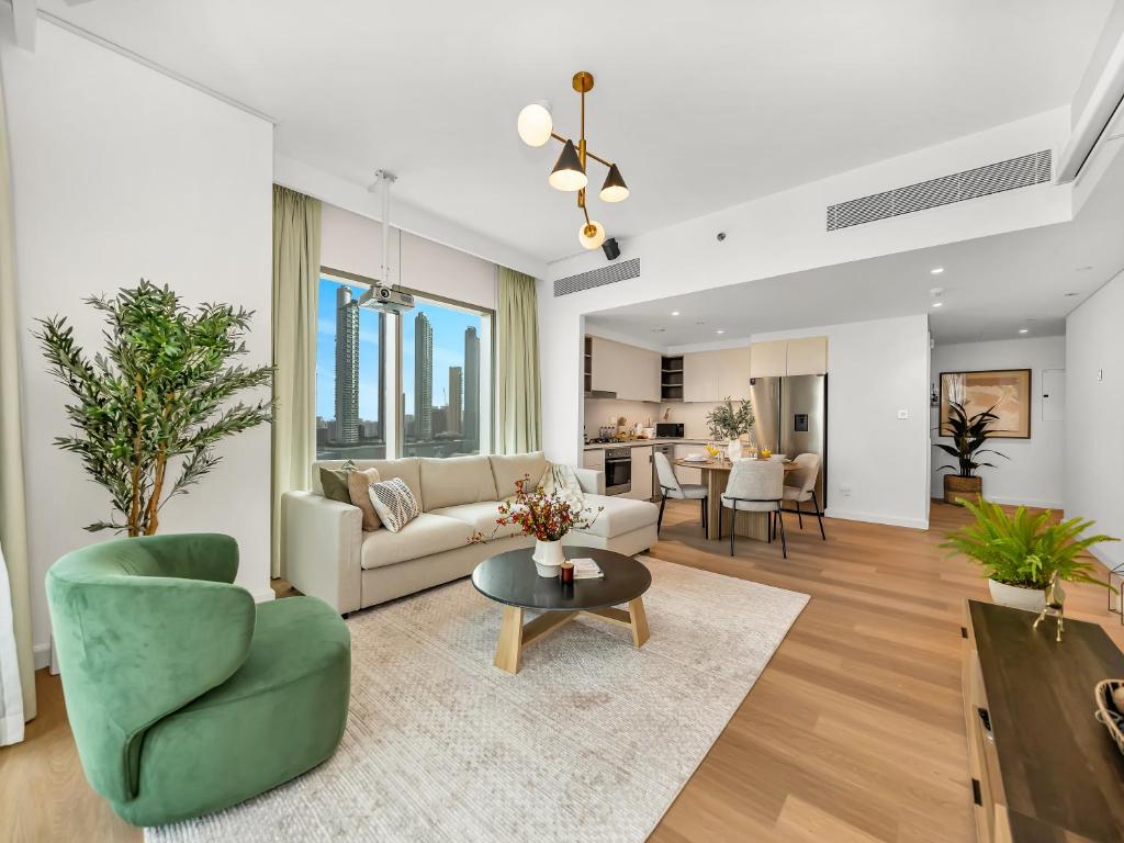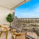 Die Wohnung umfasst zwei Schlafzimmer und zwei Badezimmer mit begehbaren Duschen, einer Spa-Badewanne sowie kostenfreien Pflegeprodukten. Der klimatisierte Wohnbereich ist ausgestattet mit einem Flachbild-TV inklusive Streaming-Diensten sowie einer voll ausgestatteten Küche mit Kochfeld, Kühlschrank, Geschirrspüler, Backofen und Küchenutensilien zur Zubereitung von Mahlzeiten. Weiterer Komfort umfasst drei Betten plus ein Futon sowie Bügelmöglichkeiten, Safe für Laptops in Laptop-Größe, Wäschetrocknerständer und Bettwäsche.